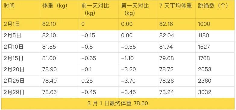 一些人还通过在社交平台上跳绳来追踪一个月以来的体重变化。 30天减掉了3.5公斤,逐渐增加了每天跳绳的次数,跳绳的状态从一开始的气喘吁吁变成了能轻松完成。