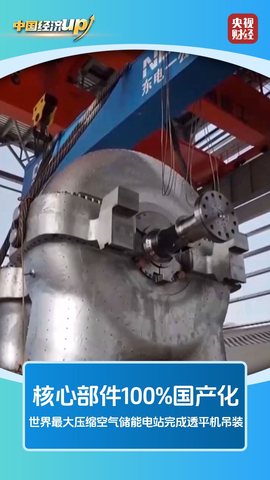 升起的涡轮机这次被称为压缩空气储能电站的“心脏”。电网负荷高峰可在几分钟内及时满足。仅需10分钟即可完成让我们完成整个“充满电”过程,将空气膨胀的势能转化为电能。团队实现主要零部件100%国产化。是目前国内机械功率最高、进气流量最大的水轮机。